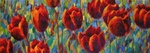 2007rode tulpen, geschilderd in dunne olieverf. Dat geeft een aquarel-effect maar met de robuustheid van olieverf.