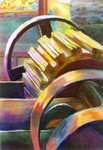 2003In een verlaten papierfabriek in Frankrijk vond ik deze machine die de pulp voor de papierfabricage verdeelt, voordat het in de papiermachine gaat.